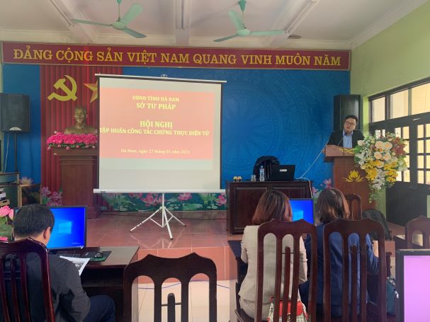 Nhằm triển khai đồng bộ, hiệu quả việc thực hiện chứng thực bản sao điện tử từ bản chính, góp phần đẩy mạnh việc thực hiện thủ tục hành chính trên môi trường điện tử, Sở Tư pháp Hà Nam đã tổ chức 06 Hội nghị tập huấn cho đội ngũ cán bộ làm công tác chứng thực, bao gồm: công chức thực hiện công tác chứng thực, công chức thực hiện ký bản sao, công chức thực hiện cấp sổ và đóng dấu bản chứng thực của các Phòng Tư pháp và UBND các xã, phường, thị trấn trên địa bàn tỉnh.