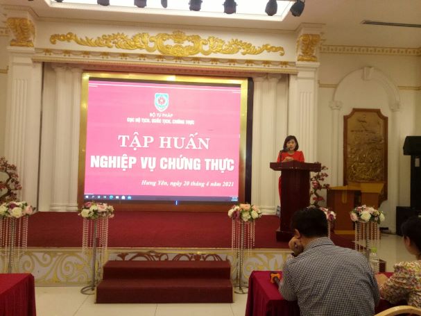 Thực hiện Quyết định số 151/QĐ-BTP ngày 04/02/2021 của Bộ trưởng Bộ Tư pháp phê duyệt Kế hoạch công tác năm 2021, tiếp nối thành công của các Lớp tập huấn nghiệp vụ chứng thực trong các năm trước, tháng 4/2021, Cục Hộ tịch, quốc tịch, chứng thực tổ chức Lớp tập huấn hướng nghiệp vụ chứng thực cho công chức của cụm 5 tỉnh miền Bắc với các thành phần học viên là các công chức các Sở Tư pháp, công chức phòng Tư pháp và công chức Tư pháp - Hộ tịch cấp xã của các tỉnh Hưng Yên, Bắc Gian, Bắc Ninh, Thái Nguyên, Vĩnh Phúc.
