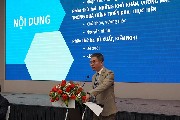 Ông Nhâm Ngọc Hiển, Phó Cục trưởng Cục HTQTCT, Bộ Tư pháp phát biểu tại Hội nghị