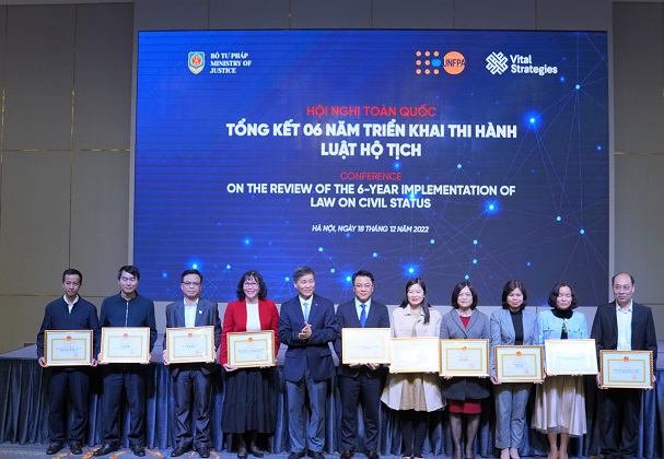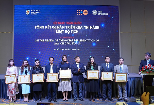 Nhân dịp này, Bộ trưởng Bộ Tư pháp đã tặng Bằng khen cho 22 tập thể, 17 cá nhân có thành tích xuất sắc trong 6 năm triển khai thi hành Luật Hộ tịch.