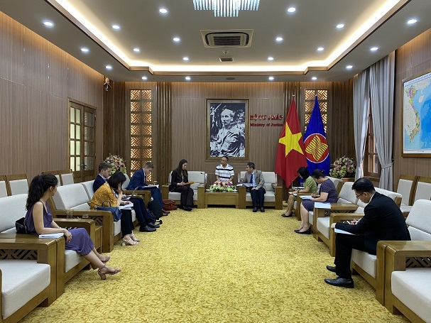 Tại buổi làm việc, hai bên đã trao đổi và chia sẻ thông tin có liên quan đến các quy định, quy trình, thủ tục trong lĩnh vực quốc tịch, hộ tịch cũng như những vấn đề liên quan đến việc áp dụng công nghệ thông tin trong việc giải quyết các việc về quốc tịch, hộ tịch trên môi trường điện tử... Đoàn cán bộ của Trung tâm ID quốc gia Đan Mạch đã được đại diện Cục Hộ tịch, quốc tịch, chứng thực trao đổi về các nội dung có liên quan đến việc xác nhận có quốc tịch Việt Nam, xác định quốc tịch Việt Nam cho trẻ em sinh ra tại nước ngoài nhưng có cha mẹ là công dân Việt Nam; việc xác định quốc tịch Việt Nam cho trẻ em sinh ra tại Đan Mạch, có một bên cha hoặc mẹ mang quốc tịch Việt Nam; các quy định và thủ tục thực hiện việc đăng ký khai sinh, đăng ký kết hôn theo hình thức trực tiếp và trực tuyến đang được áp dụng tại Việt Nam hiện nay cũng như trao đổi một số thông tin liên quan đến việc xây dựng và khai thác cơ sở dữ liệu hộ tịch điện tử phục vụ cho việc quản lý cơ sở dữ liệu về dân cư. Đoàn cán bộ của NIDC cũng đã được Cục Hộ tịch, quốc tịch, chứng thực giới thiệu và cung cấp một số biểu mẫu giấy tờ hộ tịch như Giấy khai sinh, Giấy chứng nhận kết hôn, Giấy chứng nhận có quốc tịch Việt Nam...