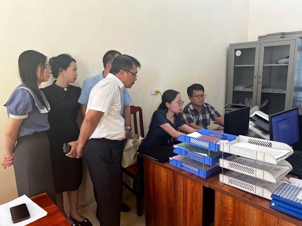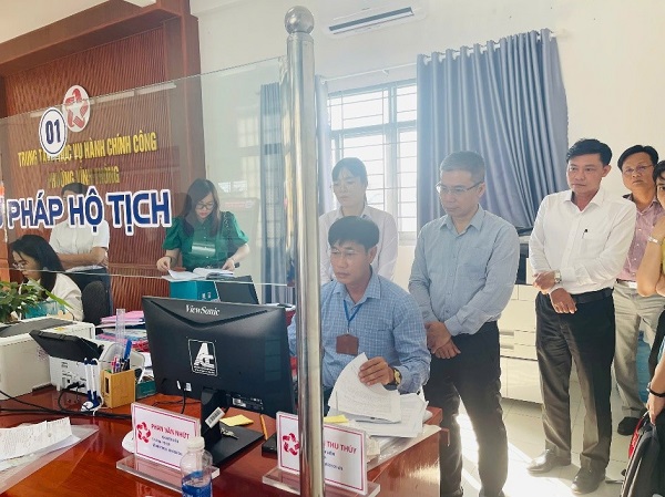 Tại buổi làm việc, đoàn công tác đã trao đổi, thảo luận, nắm bắt thông tin về tình hình triển khai thi hành Nghị định số 120/2025/NĐ-CP, Đề án 06: tập trung vào việc triển khai mô hình chính quyền địa phương 02 cấp trong lĩnh vực hộ tịch; việc sử dụng phần mềm đăng ký, quản lý hộ tịch điện tử, tập trung vào việc tiếp nhận, giải quyết hồ sơ đăng ký hộ tịch trực tuyến, liên thông 02 nhóm thủ tục hành chính liên quan đến đăng ký khai sinh, đăng ký khai tử, việc rà soát, đối chiếu, chuẩn hoá dữ liệu sau số hoá, những khó khăn, vướng mắc trong quá trình triển khai; đề xuất giải pháp nhằm tháo gỡ khó khăn, vướng mắc. Bên cạnh đó, đoàn công tác đã trực tiếp kiểm tra cơ sở vật chất, việc tiếp nhận hồ sơ và trả kết quả tại Trung tâm phục vụ hành chính công, việc giải quyết, xử lý hồ sơ của công chức làm công tác hộ tịch; hướng dẫn công chức bộ phận một cửa, công chức làm công tác hộ tịch thực hiện thao tác trên phần mềm.