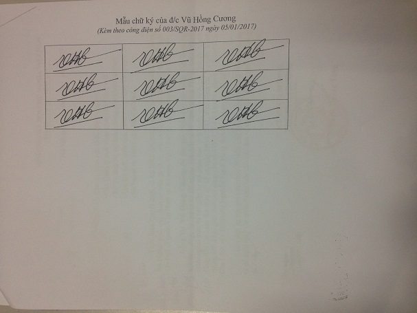 Để bảo đảm kịp thời, thống nhất và hiệu quả trong phối hợp công tác, Cục Hộ tịch, quốc tịch chứng thực thông báo 09 mẫu chữ ký của đồng chí Vũ Hồng Cương để các cơ quan, đơn vị biết.