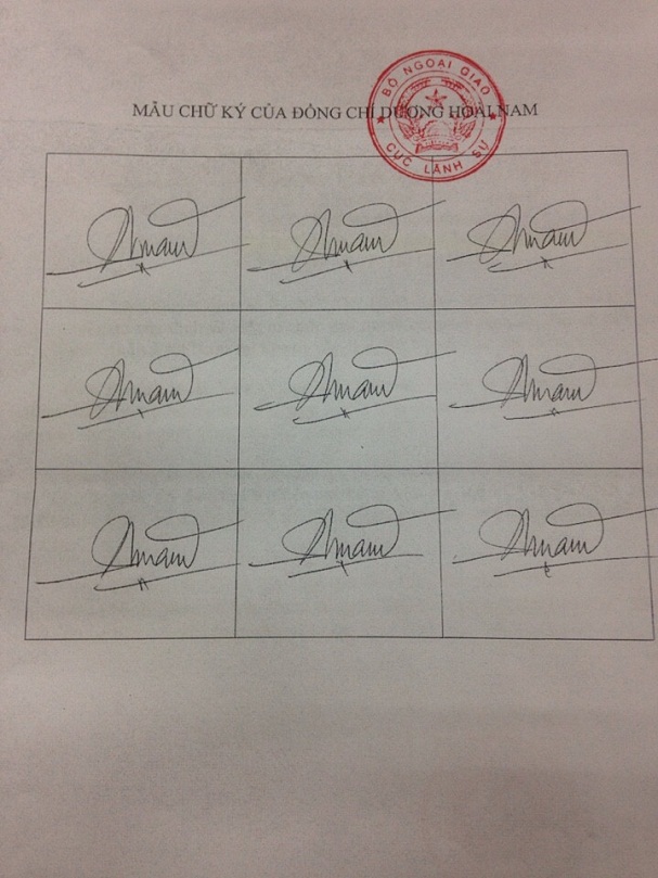 Ông Dương Hoài Nam được ủy quyền ký từ ngày 05/04/2017 thay bà Trịnh Thị Tâm (người đã được giới thiệu tại Công văn số 4655/CV-LS-LSNN ngày 24/12/2014 của Cục Lãnh sự) sẽ thôi không ký các giấy tờ về lãnh sự kể từ ngày nói trên.