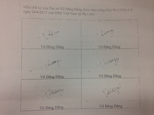 Thực hiện Quyết định số 05/2002/QĐ-BNG ngày 30/7/2002 của Bộ trưởng Bộ Ngoại giao quy định về việc tổ chức giải quyết công tác lãnh sự, căn cứ đề nghị của Đại sứ quán Việt Nam tại Vê-nê-xu-ê-la, Bộ Ngoại giao đồng ý chấp thuận: Ông Dương Minh Tuấn – Bí thư thứ ba, được ủy quyền ký các giấy tờ lãnh sự của Đại sứ quán, trừ hộ chiếu ngoại giao và các giấy tờ mà pháp luật về hộ tịch, quốc tịch quy định do người đứng đầu Cơ quan đại diện ký, từ ngày 01/4/2017.