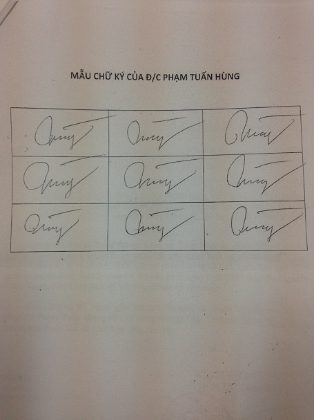 Để bảo đảm kịp thời, thống nhất và hiệu quả trong phối hợp công tác, Cục Hộ tịch, quốc tịch chứng thực thông báo 09 mẫu chữ ký của đồng chí Phạm Tuấn Hùng để các cơ quan, đơn vị biết.