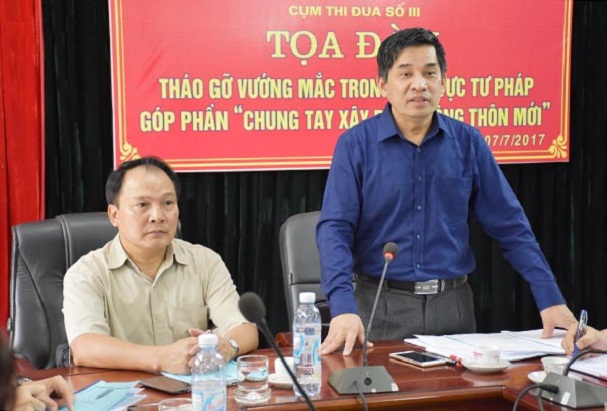 Phát biểu khai mạc tọa đàm, đồng chí Nguyễn Công Khanh, Cục trưởng Cục Hộ tịch, quốc tịch, chứng thực, Cụm trưởng Cụm thi đua số 3 nhấn mạnh: đây là một hoạt động thiết thực nhằm hưởng ứng phong trào thi đua “Ngành Tư pháp chung sức góp phần xây dựng nông thôn mới” giai đoạn 2016-2020, thực hiện nội dung thi đua “Chung tay xây dựng quê hương” nhằm đẩy mạnh các hoạt động hướng về cơ sở địa phương; tăng cường công tác phối hợp giữa các các cơ quan Trung ương với chính quyền địa phương, tổ chức thực hiện có hiệu quả các hoạt động thuộc lĩnh vực tư pháp. Từ đó, phục vụ tốt hơn yêu cầu đẩy mạnh xây dựng nông thôn mới, góp phần chung sức thực hiện thắng lợi chủ trương xây dựng nông thôn mới của Đảng và Nhà nước. Đây cũng là một cơ hội để các công chức tư pháp - hộ tịch cấp xã có thể trao đổi trực tiếp với các đồng chí là Cục trưởng, Phó Cục trưởng các đơn vị chuyên môn đồng thời cũng là những chuyên gia về các lĩnh vực hộ tịch, quốc tịch, chứng thực, nuôi con nuôi, kiểm tra văn bản quy phạm pháp luật, bồi thường nhà nước, ứng dụng công nghệ thông tin để có được những cách hiểu thống nhất, cách xử lý, tháo gỡ những khó khăn, vướng mắc phát sinh qua thực tế triển khai nhiệm vụ.