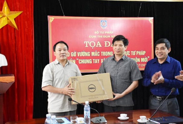 Đồng chí Vũ Ngọc Quang, Phó Chủ tịch Ủy ban nhân dân huyện Kim Bôi bày tỏ lòng cảm ơn trước sự quan tâm của Cụm thi đua số III khối các đơn vị thuộc Bộ Tư pháp đã lựa chọn tỉnh Hòa Bình là địa điểm để triển khai thực hiện nội dung thi đua “Chung tay xây dựng quê hương” một cách thiết thực và ý nghĩa thể hiện qua kết quả của buổi tọa đàm. Bên cạnh việc giải đáp những vướng mắc trong công tác chuyên môn, Đoàn công tác còn tặng Phòng Tư pháp huyện Kim Bôi một bộ máy tính, đây là sự động viên, khích lệ to lớn dành cho những người làm công tác tư pháp tại địa phương, là động lực để các đồng chí yên tâm công tác, ngày càng trau dồi thêm kiến thức, kinh nghiệm, góp phần xây dựng quê hương giàu mạnh. Đồng chí tin tưởng rằng qua hoạt động này, chất lượng của công tác tư pháp địa phương sẽ được nâng cao và hi vọng rằng, hoạt động “Chung tay xây dựng quê hương” sẽ được tiếp tục phát huy, nhân rộng trong thời gian tới.