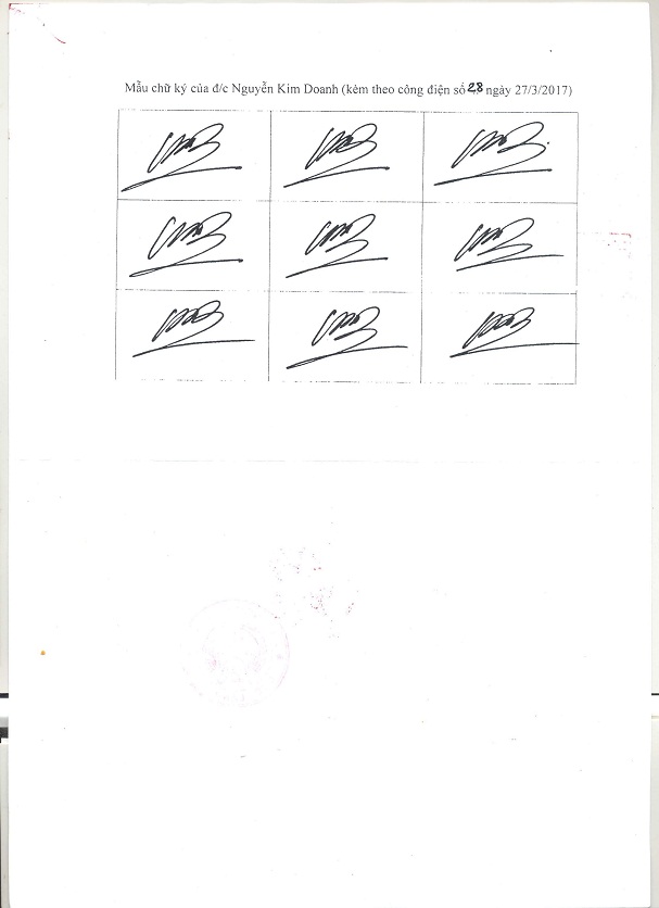 Để bảo đảm kịp thời, thống nhất và hiệu quả trong phối hợp công tác, Cục Hộ tịch, quốc tịch chứng thực thông báo 09 mẫu chữ ký của đồng chí Nguyễn Kim Doanh để các cơ quan, đơn vị biết.
