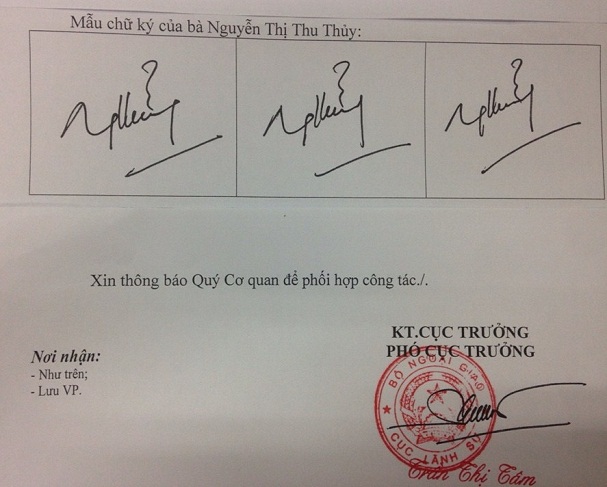 Để bảo đảm kịp thời, thống nhất và hiệu quả trong công tác phối hợp giữa các đơn vị, Cục Hộ tịch, quốc tịch chứng thực thông báo 03 mẫu chữ ký của Bà Nguyễn Thị Thu Thủy tới các cơ quan, đơn vị để biết./.