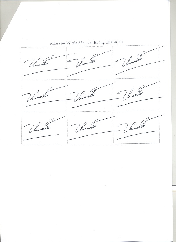 Để bảo đảm kịp thời, thống nhất và hiệu quả trong phối hợp công tác, Cục Hộ tịch, quốc tịch chứng thực thông báo 09 mẫu chữ ký của đồng chí Hoàng Thanh Tú để các cơ quan, đơn vị biết.