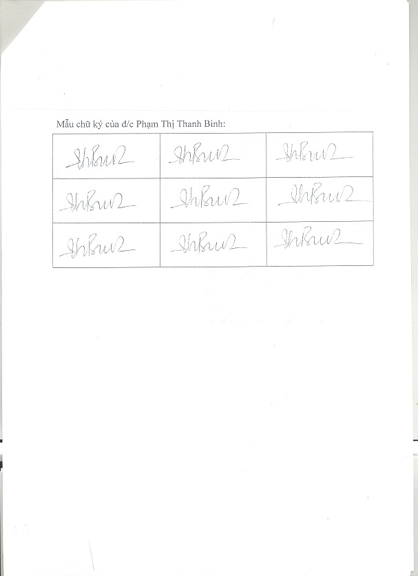 Để bảo đảm kịp thời, thống nhất và hiệu quả trong phối hợp công tác, Cục Hộ tịch, quốc tịch chứng thực thông báo 09 mẫu chữ ký của đồng chí Phạm Thị Thanh Bình để các cơ quan, đơn vị biết.
