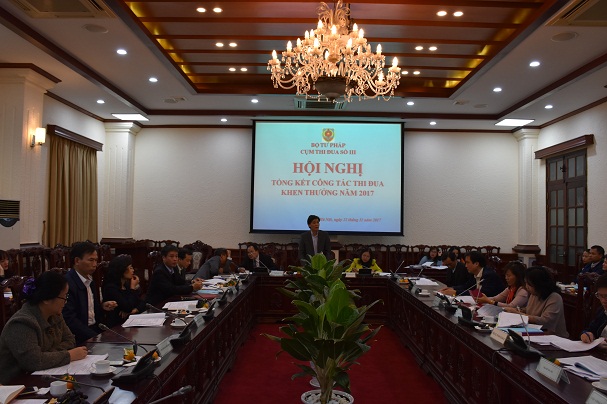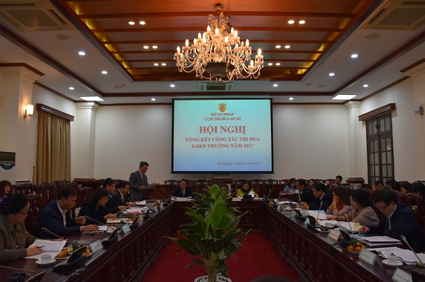 Trong năm 2017, Cụm thi đua số III khối các đơn vị thuộc Bộ Tư pháp gồm 12 thành viên: Cục Hộ tịch, quốc tịch, chứng thực; Tổng cục Thi hành án dân sự; Cục Bồi thường Nhà nước; Cục Kiểm tra văn bản quy phạm pháp luật; Cục Đăng ký Quốc gia giao dịch bảo đảm; Cục Trợ giúp pháp lý; Cục Con nuôi; Cục Công nghệ thông tin; Thanh tra Bộ; Cục Công tác phía Nam; Cục Bổ trợ tư pháp; Cục Quản lý xử lý vi phạm hành chính và theo dõi thi hành pháp luật, là những đơn vị đảm nhiệm phụ trách những lĩnh vực quan trọng của Bộ, của Ngành. Mặc dù trong điều kiện còn nhiều khó khăn về cơ sở vật chất, tổ chức bộ máy và nhân sự còn thiếu so với yêu cầu công việc song các đơn vị đã có nhiều cố gắng nỗ lực, khắc phục mọi khó khăn, tích cực chủ động tổ chức phong trào thi đua với những nội dung thiết thực bám sát những yêu cầu trong Chương trình công tác trọng tâm của Bộ, nội dung của Kế hoạch phát động phong trào thi đua của Ngành và của Cụm.