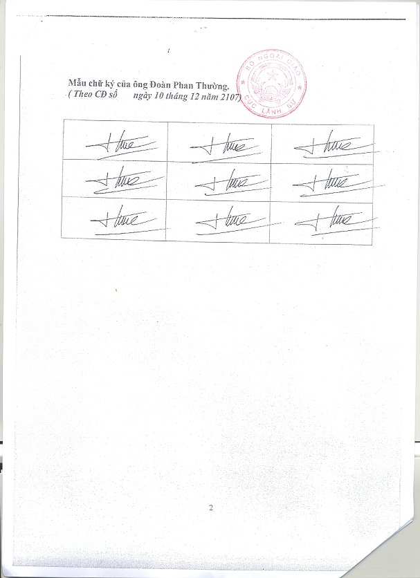Thực hiện Quyết định số 05/2002/QĐ-BNG ngày 30/7/2002 của Bộ trưởng Bộ Ngoại giao quy định về việc tổ chức giải quyết công tác lãnh sự, căn cứ đề nghị của Đại sứ quán Việt Nam tại Ekaterinburg, Bộ Ngoại giao đồng ý chấp thuận: đồng chí Đoàn Phan Thường –