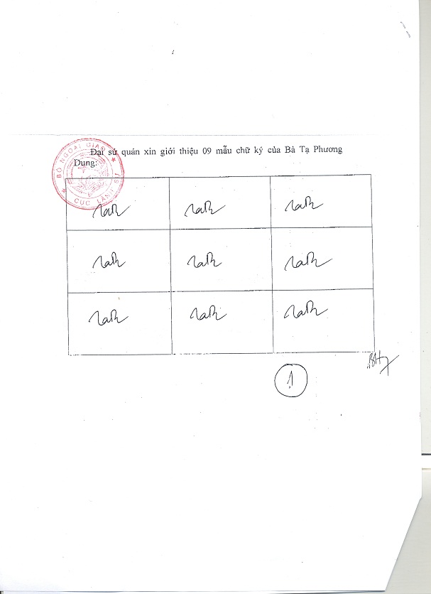 Để bảo đảm kịp thời, thống nhất và hiệu quả trong phối hợp công tác, Cục Hộ tịch, quốc tịch chứng thực thông báo 09 mẫu chữ ký của đồng chí Tạ Phương Dung để các cơ quan, đơn vị biết.