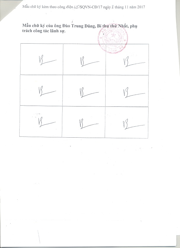 Để bảo đảm kịp thời, thống nhất và hiệu quả trong phối hợp công tác, Cục Hộ tịch, quốc tịch chứng thực thông báo 09 mẫu chữ ký đầy đủ và 09 mẫu chữ ký tắt của đồng chí Đào Trung Dũng để các cơ quan, đơn vị biết.