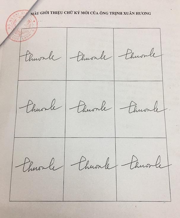 Tiếp Công văn số 494/LS-LSNN ngày 15/02/2017 của Cục Lãnh sự, Bộ Ngoại giao về việc giới thiệu chữ ký của đồng chí Trịnh Xuận Hương, Lãnh sự (Tổng Lãnh sự quán tại Côn Minh, Trung Quốc), Cục Lãnh sự - Bộ Ngoại giao đồng ý chấp thuận: do yêu cầu công tác đồng chí Trịnh Xuân Hương thay đổi mẫu chữ ký mới kể từ ngày 14/05/2018, đồng chí Hương tiếp tục sử dụng chữ ký cũ cho đến hết ngày 13/05/2018. Đồng chí Hương tiếp tục được ủy quyền ký tất cả các loại giấy tờ về lãnh sự, trừ hộ chiếu ngoại giao.