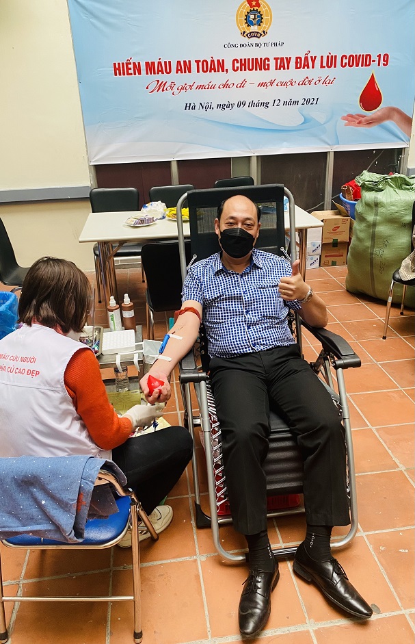 Hiến máu tình nguyện là một hoạt động mang ý nghĩa nhân văn sâu sắc, là nét đẹp trong cuộc sống của mỗi cá nhân, gia đình và toàn xã hội. Hưởng ứng phát động vì cộng đồng của Công đoàn Bộ Tư pháp, sáng ngày 09/12/2021, tại trụ sở của Bộ, Công đoàn cùng với Đoàn Thanh niên Cục Hộ tịch, quốc tịch, chứng thực đã tham gia hiến máu tình nguyện với chủ đề “Hiến máu an toàn – Chung tay đẩy lùi Covid-19”.