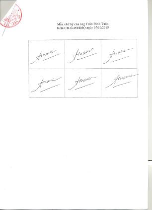 Để bảo đảm kịp thời, thống nhất và hiệu quả trong phối hợp công tác, Cục Hộ tịch, quốc tịch chứng thực thông báo 06 mẫu chữ ký của đồng chí Trần Đình Tuân để các cơ quan, đơn vị biết.
