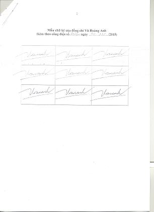 Để bảo đảm kịp thời, thống nhất và hiệu quả trong phối hợp công tác, Cục Hộ tịch, quốc tịch chứng thực thông báo 09 mẫu chữ ký của đồng chí Vũ Hoàng Anh để các cơ quan, đơn vị biết.