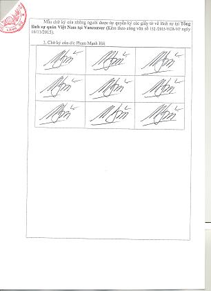 Theo đó, đồng chí Phạm Mạnh Hải được ủy quyền ký các giấy tờ nêu trên kể từ ngày 23/11/2015 thay đồng chí Trần Quang Dũng (người đã được giới thiệu tại Công văn số 0117/CV-LS-LSNN ngày 08/01/2013 của Cục Lãnh sự). Đồng chí Trần Quang Dũng sẽ thôi ký các giấy tờ lãnh sự kể từ ngày 02/11/2015.