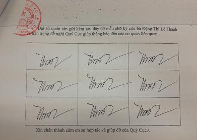 Để bảo đảm kịp thời, thống nhất và hiệu quả trong phối hợp công tác, Cục Hộ tịch, quốc tịch chứng thực thông báo 09 mẫu chữ ký của bà Đặng Thị Lệ Thanh để các cơ quan, đơn vị biết./.