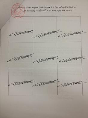 Theo nội dung Công văn số 1311/CV-LS-LSNN ngày 09/5/2016 của Cục Lãnh sự, Bộ Ngoại giao giới thiệu chữ ký của ông Bùi Quốc Thành - Phó Cục trưởng, Cục Lãnh sự kể từ ngày 11/5/2016.