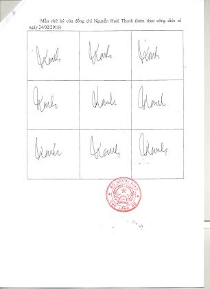 Để bảo đảm kịp thời, thống nhất và hiệu quả trong phối hợp công tác, Cục Hộ tịch, quốc tịch chứng thực thông báo 09 mẫu chữ ký của đồng chí Nguyễn Hoài Thanh để các cơ quan, đơn vị biết.