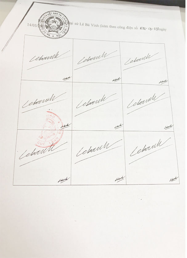 Bộ Ngoại giao đồng ý chấp thuận: đồng chí Lê Bá Vinh – Đại sứ Việt Nam tại Cộng hòa dân chủ nhân dân Triều Tiên được ký các giấy tờ lãnh sự