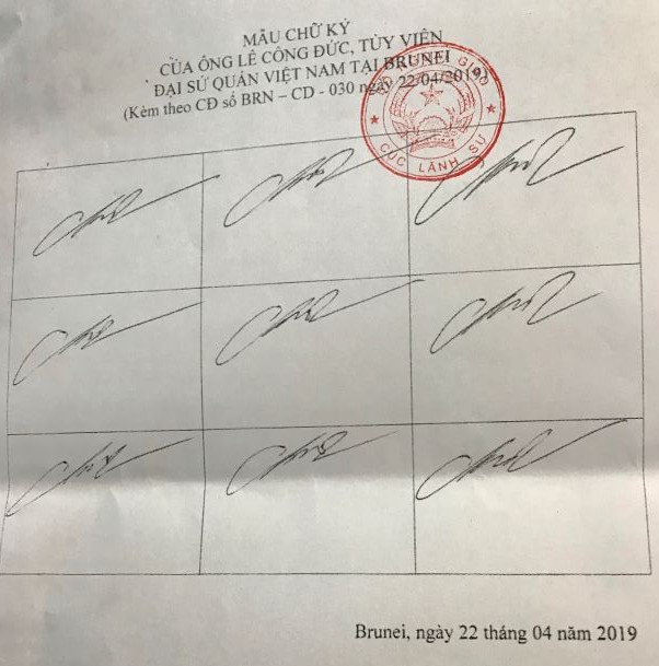 Bộ Ngoại giao đồng ý chấp thuận: đồng chí Lê Công Đức, Tùy viên, Đại sứ quán Việt Nam tại Brunei, được ký các giấy tờ lãnh sự