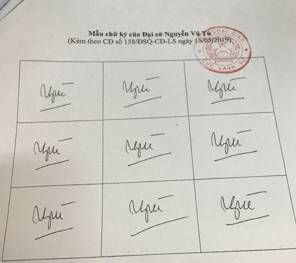 Cục Hộ tịch, quốc tịch, chứng thực nhận được Công văn số 1563/CV-LS-LSNN ngày 20/05/2019 của Cục Lãnh sự, Bộ Ngoại giao về việc giới thiệu chữ ký đồng chí Nguyễn Vũ Tú, nội dung cụ thể như sau: