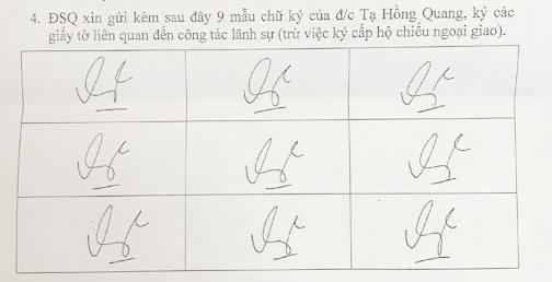 Bộ Ngoại giao đồng ý chấp thuận: đồng chí Tạ Hồng Quang – Tham tán, Đại sứ quán Việt Nam tại Angola được ký các giấy tờ lãnh sự