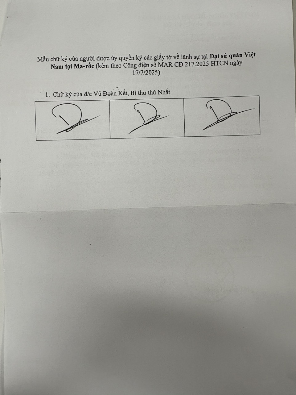 Ngày 29/7/2025, Cục Hành chính tư pháp nhận được Công văn số 3382/LS-LSNN ngày22/7/2025 của Cục Lãnh sự, Bộ Ngoại giao về việc giới thiệu chữ ký lãnh sự của đồng chí Vũ Đoàn Kết, nội dung cụ thể như sau: