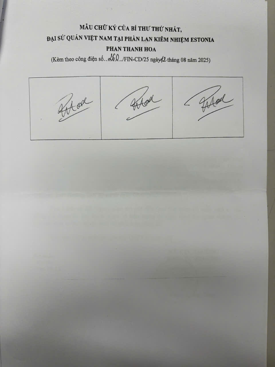 Ngày 18/8/2025, Cục Hành chính tư pháp nhận được Công văn số 3883/LS-LSNN ngày 414/8/2025 của Cục Lãnh sự, Bộ Ngoại giao về việc giới thiệu chữ ký lãnh sự của đồng chí Phan Thanh Hoa, nội dung cụ thể như sau: