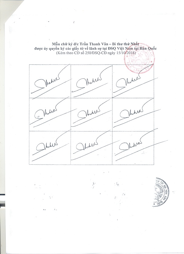 Bộ Ngoại giao đồng ý chấp thuận: Đồng chí Trần Thanh Vân, Bí thư thứ nhất, Đại sứ quán nước Cộng hòa xã hội chủ nghĩa Việt Nam tại Hàn Quốc, được quyền ký các giấy tờ về lãnh sự