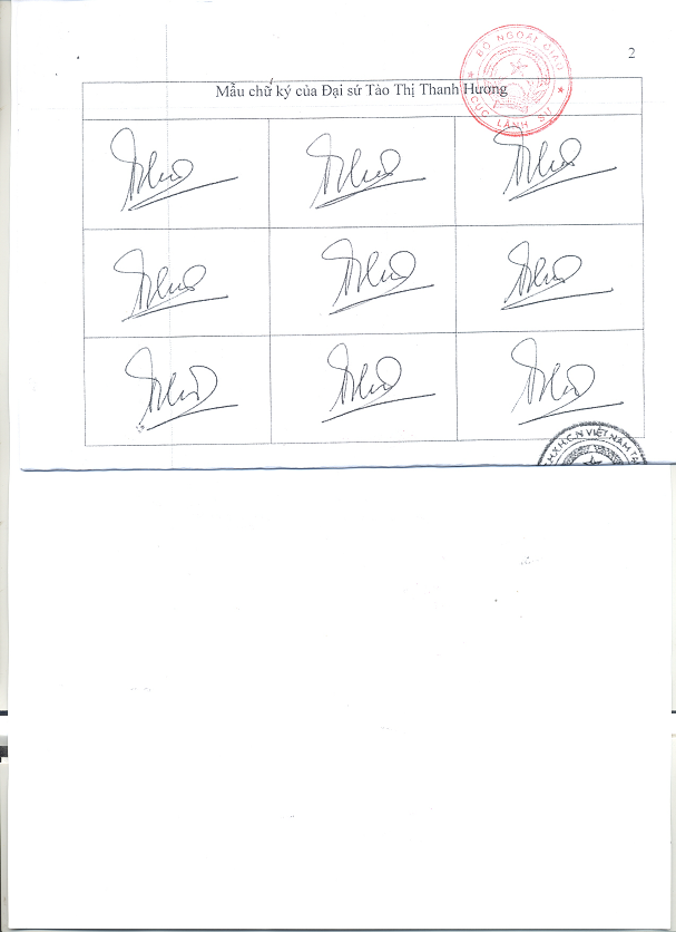 Bộ Ngoại giao đồng ý chấp thuận: Đồng chí Tào Thị Thanh Hương - Đại sứ đặc mệnh toàn quyền nước Cộng hòa xã hội chủ nghĩa Việt Nam tại Singapore, được ủy quyền ký các giấy tờ về lãnh sự