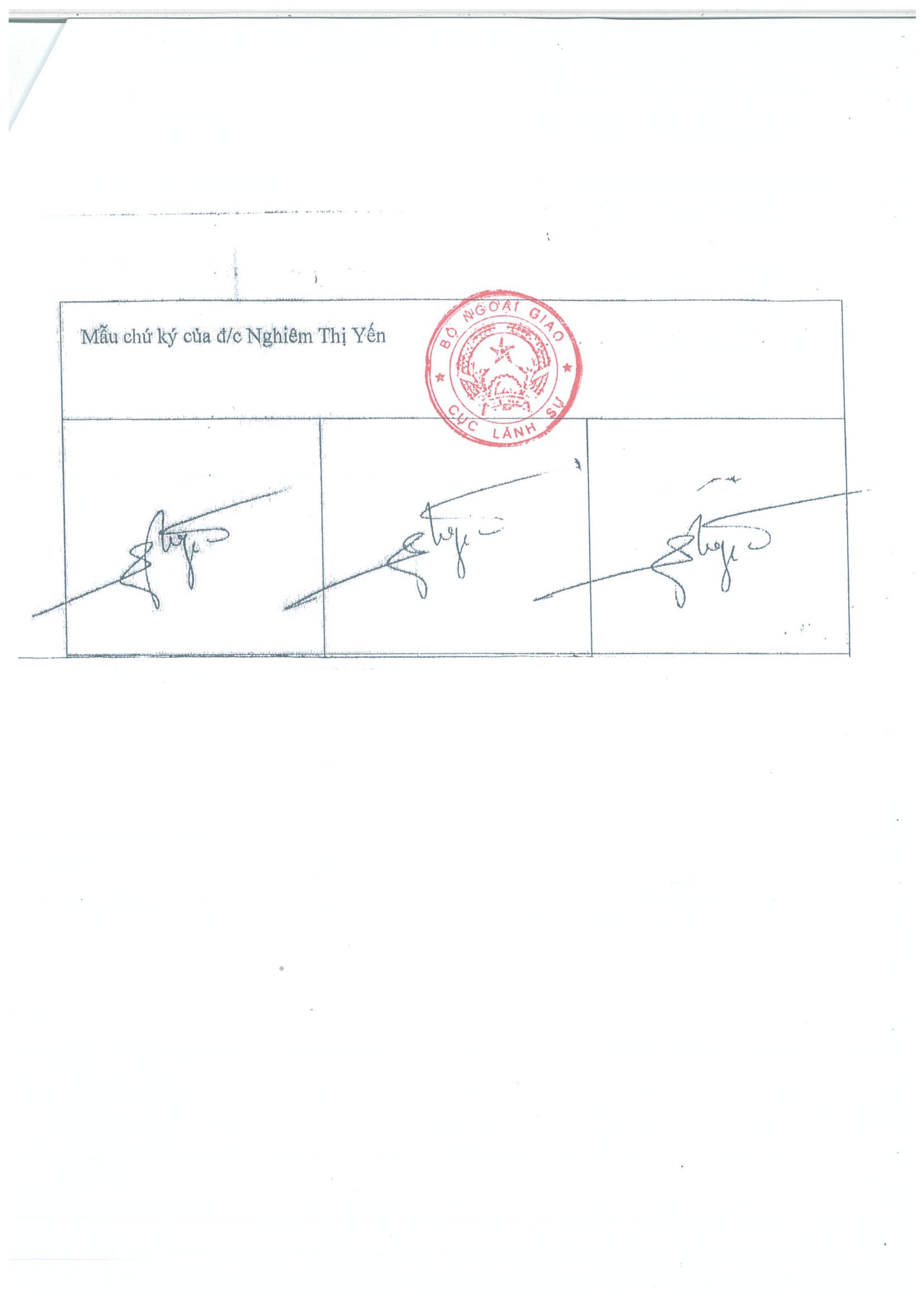 Ngày 30/7/2024, Cục Hộ tịch, quốc tịch, chứng thực nhận được Công văn số 2953/CV-LS-LSNN ngày 25/7/2024 của Cục Lãnh sự, Bộ Ngoại giao về việc giới thiệu chữ ký lãnh sự của đồng chí Nghiêm Thị Yến, nội dung cụ thể như sau:
