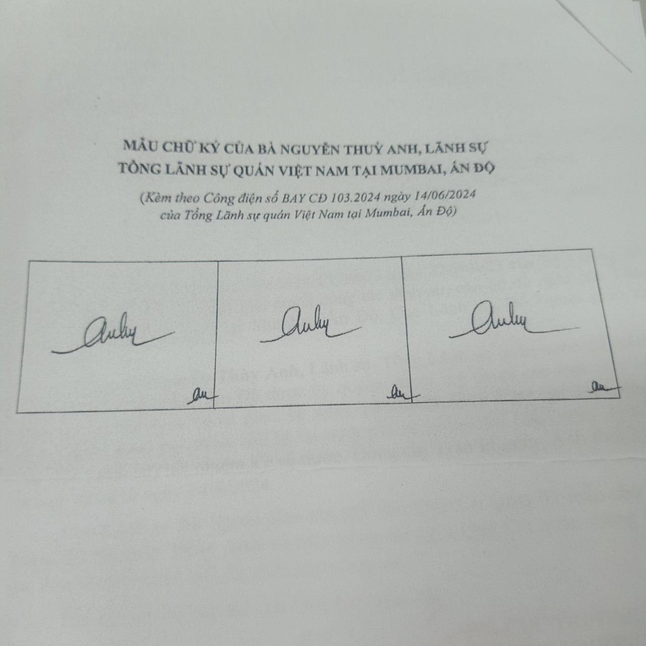 Ngày 01/8/2024, Cục Hộ tịch, quốc tịch, chứng thực nhận được Công văn số 2323/CV-LS-LSNN ngày 20/2024 của Cục Lãnh sự, Bộ Ngoại giao về việc giới thiệu chữ ký lãnh sự của đồng chí Nguyễn Thuỳ Anh, nội dung cụ thể như sau: