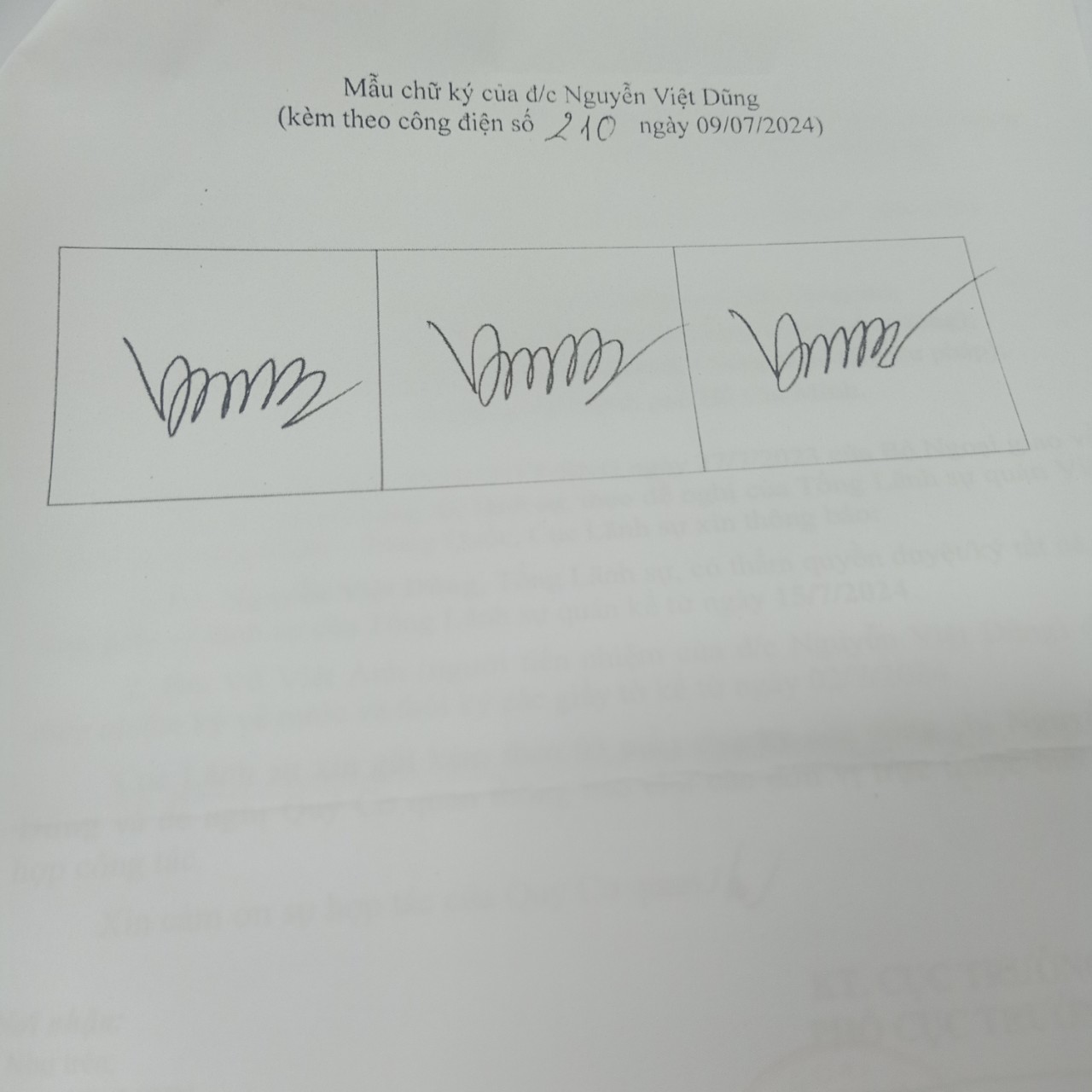 Ngày 01/8/2024, Cục Hộ tịch, quốc tịch, chứng thực nhận được Công văn số 2708/CV-LS-LSNN ngày 11/7/2024 của Cục Lãnh sự, Bộ Ngoại giao về việc giới thiệu chữ ký lãnh sự của đồng chí Nguyễn Việt Dũng, nội dung cụ thể như sau: