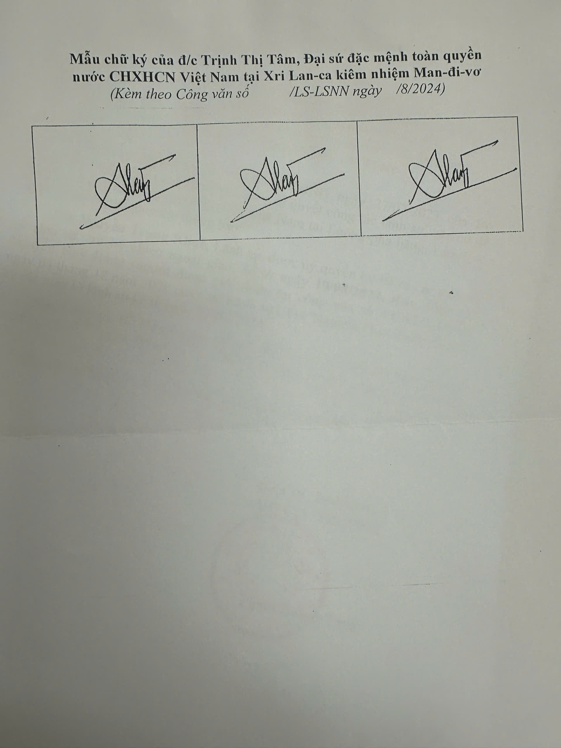 Ngày 13/8/2024, Cục Hộ tịch, quốc tịch, chứng thực nhận được Công văn số 3197/CV-LS-LSNN ngày 09/8/2024 của Cục Lãnh sự, Bộ Ngoại giao về việc giới thiệu chữ ký lãnh sự của đồng chí Trịnh Thị Tâm, nội dung cụ thể như sau: