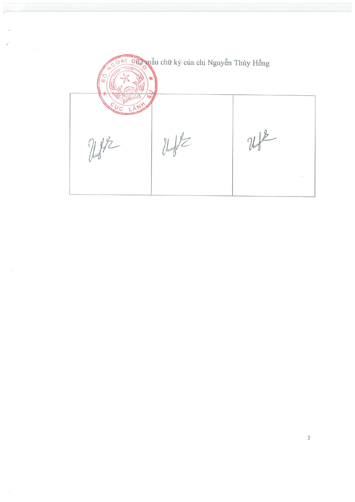 Thông báo chữ ký lãnh sự của đồng chí Nguyễn Thuý Hồng, Tuỳ viên, Đại sứ quán Việt Nam tại Các tiểu vương quốc Ả rập thống nhất (UAE)