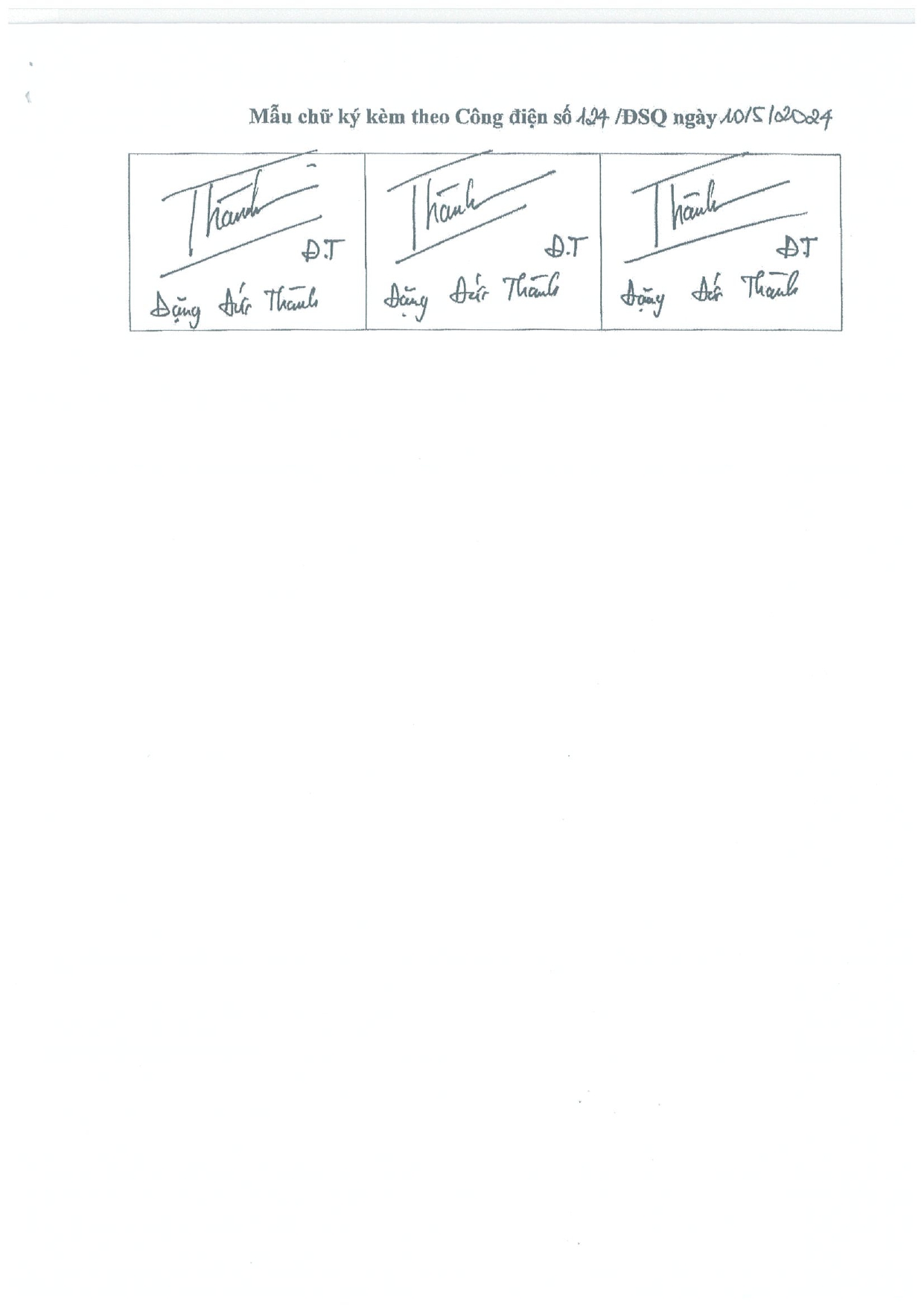 Ngày 23/5/2024, Cục Hộ tịch, quốc tịch, chứng thực nhận được Công văn số 1854/CV-LS-LSNN ngày 22/5/2024 của Cục Lãnh sự, Bộ Ngoại giao về việc giới thiệu chữ ký lãnh sự của đồng chí Đặng Đức Thành, nội dung cụ thể như sau:
