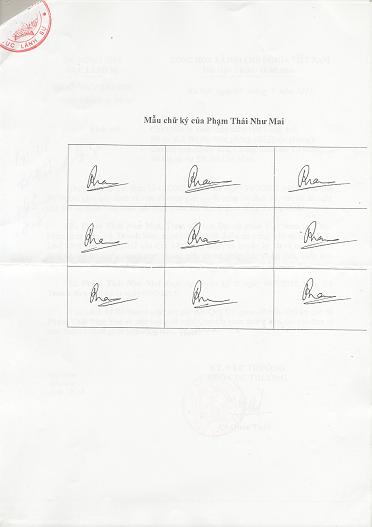 Thực hiện Quyết định số 05/2002/QĐ-BNG ngày 30/7/2002 của Bộ trưởng Bộ Ngoại giao quy định về việc tổ chức giải quyết công tác lãnh sự, căn cứ đề nghị của Đại sứ quán Việt Nam tại Thụy Điển, Bộ Ngoại giao đồng ý chấp thuận: bà Phạm Thái Như Mai - Tham tán của Đại sứ quán Việt Nam tại Thụy Điển (thay ông Vũ Thành Sơn, người được giới thiệu tại Công văn số 0268/CV-LS-LSNN ngày 03/02/2012 của Cục Lãnh sự), uỷ quyền ký tất cả các giấy tờ lãnh sự, trừ hộ chiếu ngoại giao và các giấy tờ mà pháp luật về hộ tịch, quốc tịch quy định do người đứng đầu Cơ quan đại diện ký. Bà Phạm Thái Như Mai được uỷ quyền ký kể từ ngày 06/7/2015. Ông Vũ Thành Sơn thôi ký từ ngày 06/7/2015. Bộ Ngoại giao thông báo 09 mẫu chữ ký của bà Phạm Thái Như Mai để các cơ quan, đơn vị biết, phối hợp.