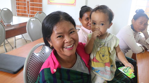 Chị Lương Thị Xôm, bản Kèo Cơn, xã Keng Đu, huyện Kỳ Sơn, tỉnh Nghệ An, vui mừng cùng con gái út được làm thủ tục nhập quốc tịch Việt Nam
