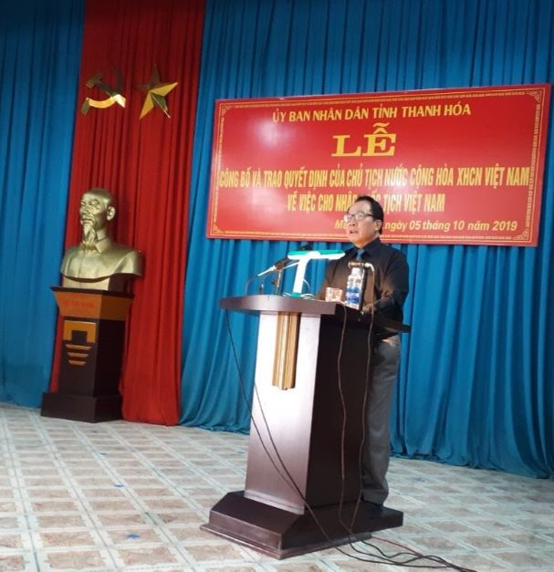 Ông Nguyễn Công Khanh, Cục trưởng Cục Hộ tịch, quốc tịch, chứng thực (Bộ Tư pháp) đã đánh giá cao sự vào cuộc quyết liệt và đồng bộ của các Sở, ban, ngành của tỉnh Thanh Hóa, từ đó giúp công tác rà soát, lập danh sách và hoàn thiện hồ sơ xin nhập quốc tịch được hoàn thiện và sớm chuyển về Bộ Tư pháp, đồng thời chúc mừng 51 người dân di cư tự do Lào cư trú tại tỉnh Thanh Hóa đã được chính thức trở thành công dân nước CHXHCN Việt Nam trong đợt này. Ông cũng bày tỏ mong muốn, từ nay, các quyền và lợi ích cơ bản và hợp pháp của bà con sẽ từng bước được bảo đảm; con cháu sẽ được đăng ký khai sinh, được đảm bảo quyền được học, quyền được khám chữa bệnh và các quyền lợi như bao trẻ em khác.