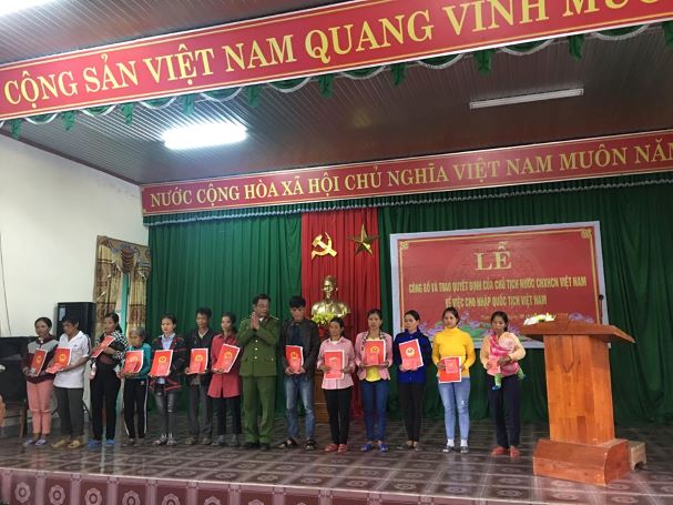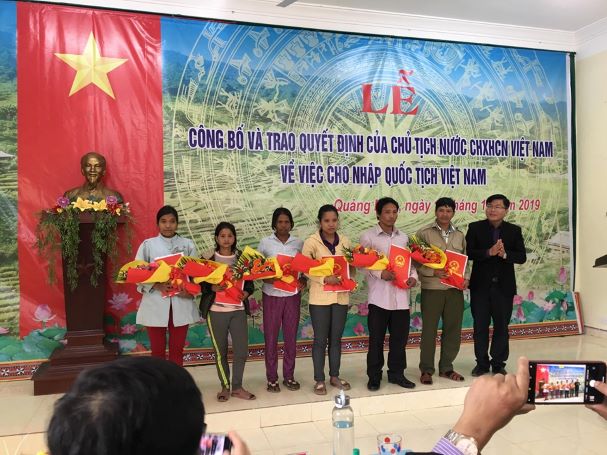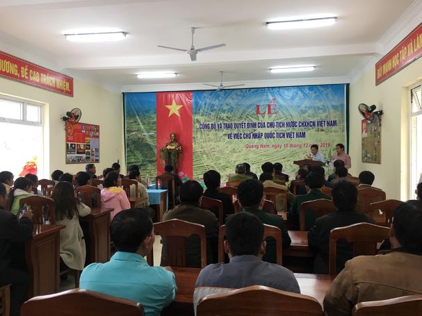 Theo sự phân công của UBND tỉnh Quảng Nam, đồng chí Bùi Xuân Hiếu – Phó Giám đốc Sở Tư pháp đã công bố và trao Quyết định số 1148/QĐ-CTN ngày 03/7/2019 của Chủ tịch nước Cộng hòa xã hội chủ nghĩa Việt Nam cho 19 trường hợp người Lào di cư tự do và kết hôn không giá thú (Tây Giang: 06 trường hợp; Nam Giang: 13 trường hợp). Cũng trong dịp này, chính quyền hai huyện Nam Giang và Tây Giang cũng đã trao các giấy tờ về khai sinh, kết hôn, CMND và trao tặng các phần quà, nhu yếu phẩm thiết yếu cho các hộ gia đình có công dân mới nhập quốc tịch, nhằm tạo điều kiện ban đầu cho các công dân này này sớm ổn định cuộc sống tại địa phương.