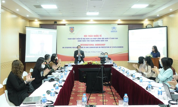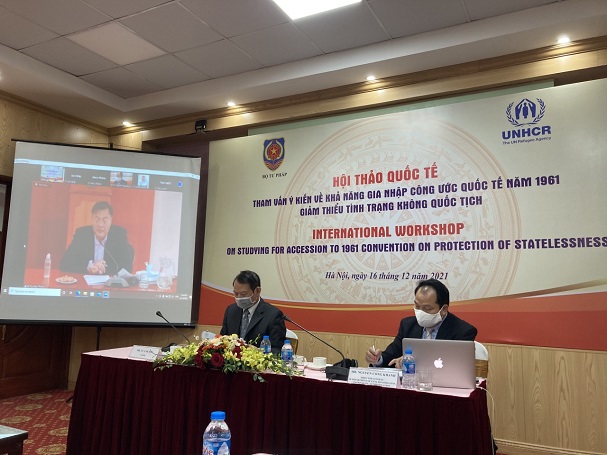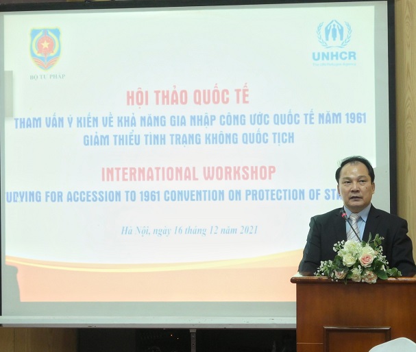 Phát biểu khai mạc Hội thảo, Tiến sỹ Nguyễn Công Khanh đã thông tin, một trong những nhiệm vụ của Bộ Tư pháp được giao theo Quyết định số 402/QĐ-TTg ngày 20/3/2020 ban hành Kế hoạch triển khai Thỏa thuận toàn cầu về di cư hợp pháp, an toàn và trật tự tại Việt Nam, giai đoạn 2020-2030 là đẩy mạnh nghiên cứu và gia nhập Công ước quốc tế 1961 về giảm thiểu tình trạng không quốc tịch. Việc tổ chức hội thảo quốc tế tham vấn ý kiến về khả năng gia nhập Công ước này là một trong những hoạt động nhằm triển khai nhiệm vụ nêu trên của Bộ Tư pháp trong năm 2021.