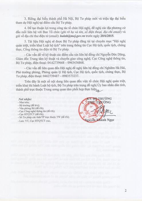 Giấy mời số 505/GM - BTP Dự Hội nghị toàn quốc triển khai thi hành Luật hộ tịch