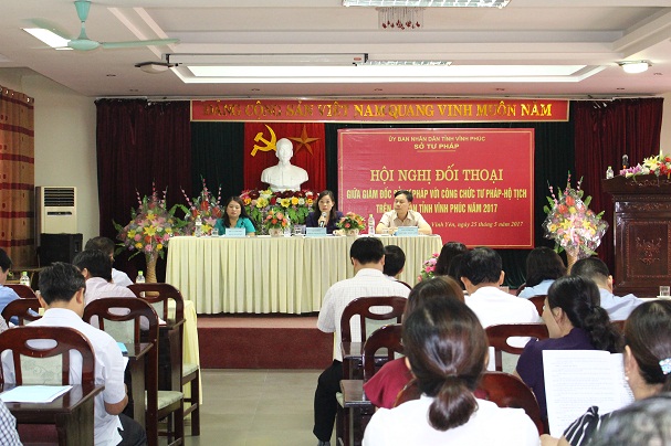Đẩy mạnh hoạt động tư pháp hướng về cơ sở, sáng ngày 25/5/2017, Sở Tư pháp Vĩnh Phúc tổ chức Hội nghị đối thoại giữa Giám đốc Sở Tư pháp với công chức tư pháp-hộ tịch trên địa bàn tỉnh Vĩnh Phúc năm 2017. Đây là lần đầu tiên Sở Tư pháp Vĩnh Phúc tổ chức Hội nghị đối thoại nhưng đã nhận được những phản hồi tích cực, sự đồng tình của toàn thể đội ngũ cán bộ trong ngành trước sự đổi mới về công tác lãnh đạo, điều hành đối với hoạt động tư pháp cơ sở. Hội nghị do đồng chí Phùng Thị Kim Nga-Tỉnh ủy viên, Giám đốc Sở Tư pháp chủ trì và với sự tham gia của 170 công chức tư pháp-hộ tịch làm việc tại 137 xã, phường, thị trấn trên địa bàn tỉnh.