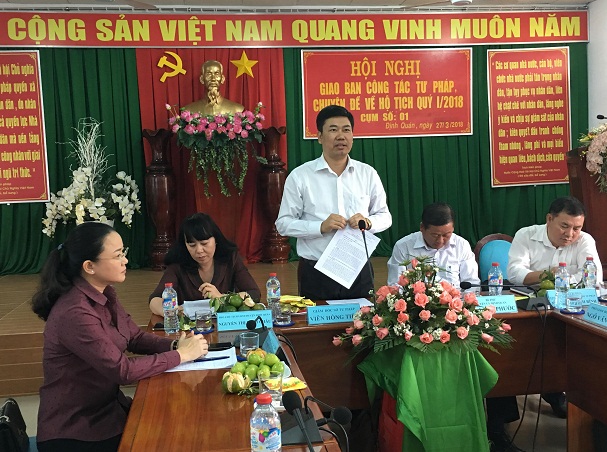 Hội nghị đã lắng nghe tình hình triển khai công tác tư pháp của các đơn vị cấp huyện trên địa bàn tỉnh Đồng Nai. Trong đó, các địa phương đã triển khai khẩn trương, nghiêm túc Quyết định số 96/QĐ-UBND ngày 10/01/2018 phê duyệt Chương trình trọng tâm công tác năm 2018. Hội nghị đã tập trung vào chuyên đề về đăng ký và quản lý hộ tịch với những vấn đề vướng mắc trong việc giải quyết đăng ký khai sinh, đăng ký khai sinh cho người lớn tuổi, bổ sung thông tin trong giấy khai sinh (như tên cha, mẹ; ngày tháng năm sinh;...); giải quyết vấn đề quốc tịch, hộ tịch của người di dân từ vùng biên giới đến địa phương;.....